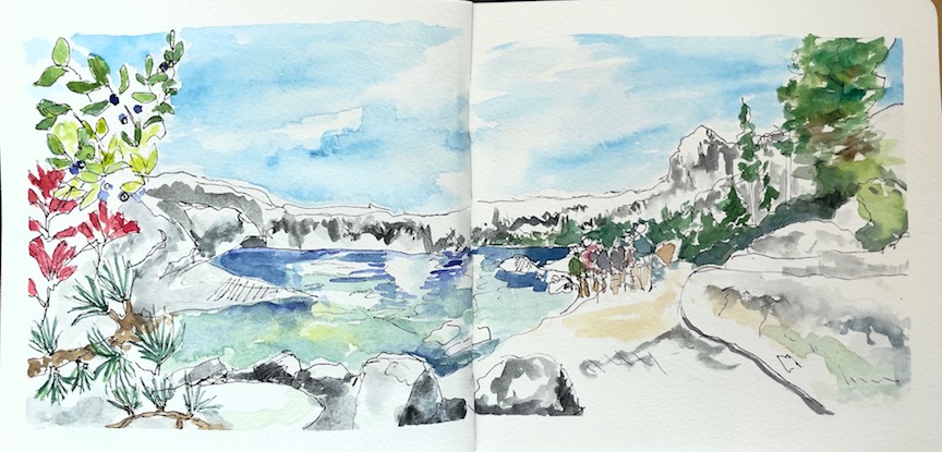 Sketching people, landscapes, architecture, treats, plants, honey, and a mushroom.