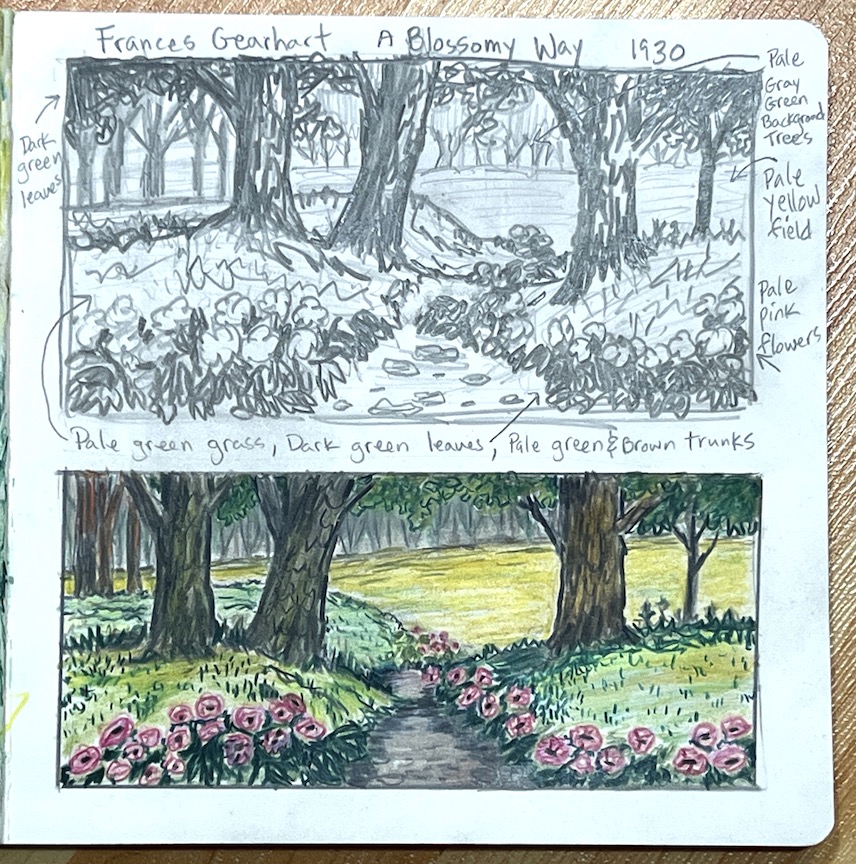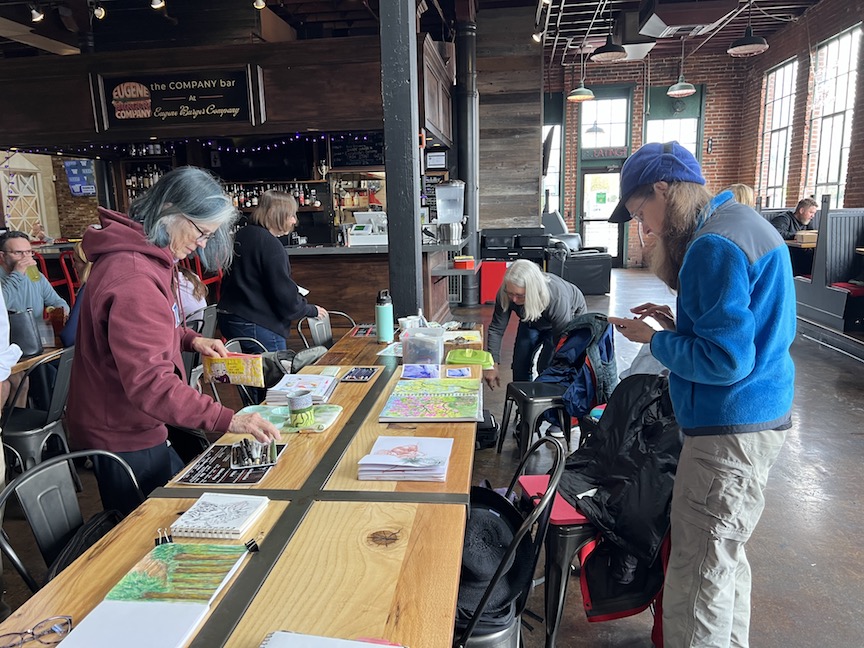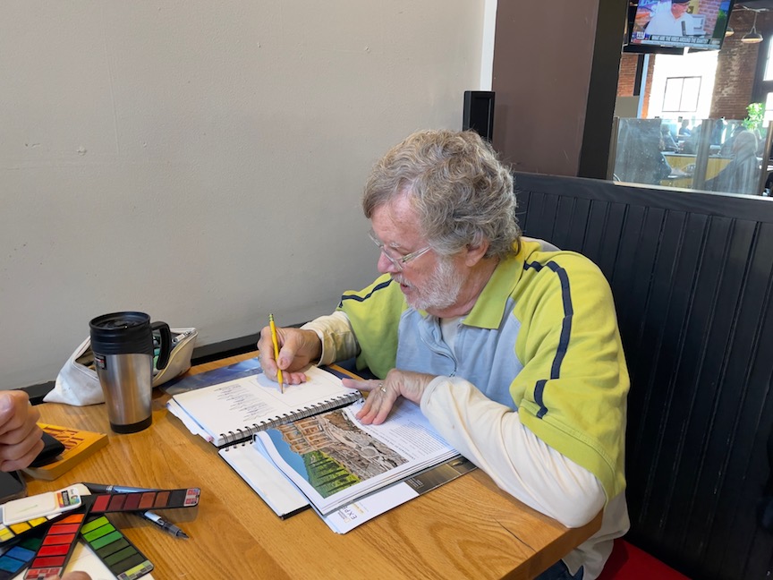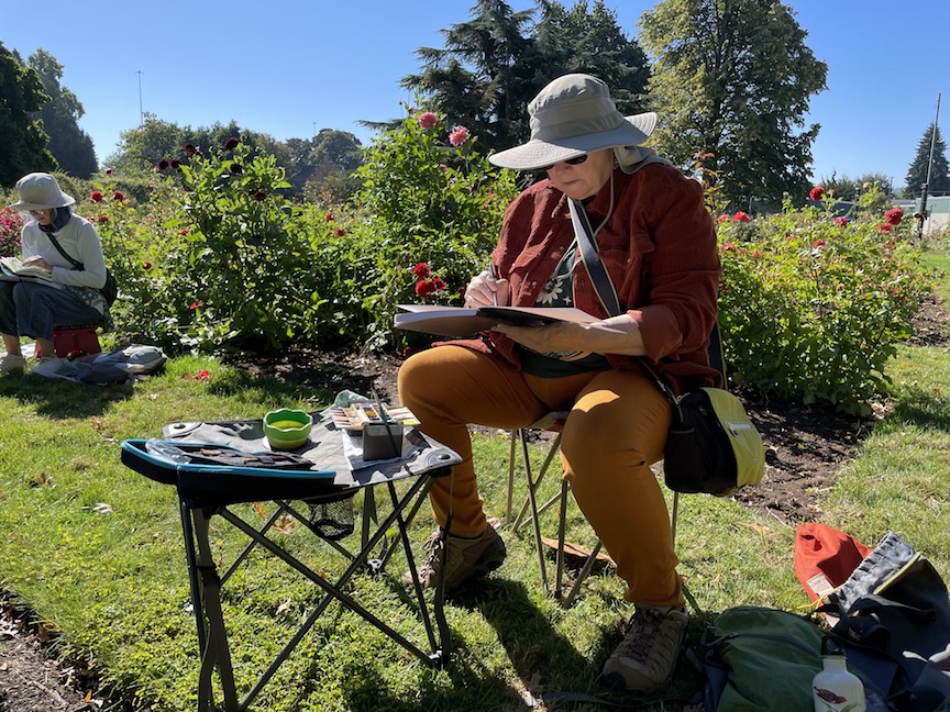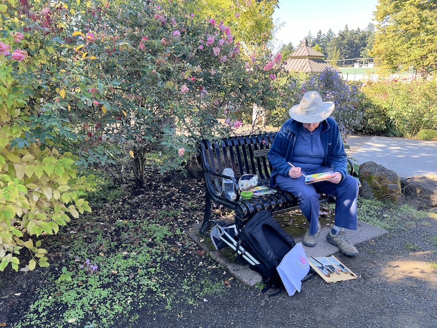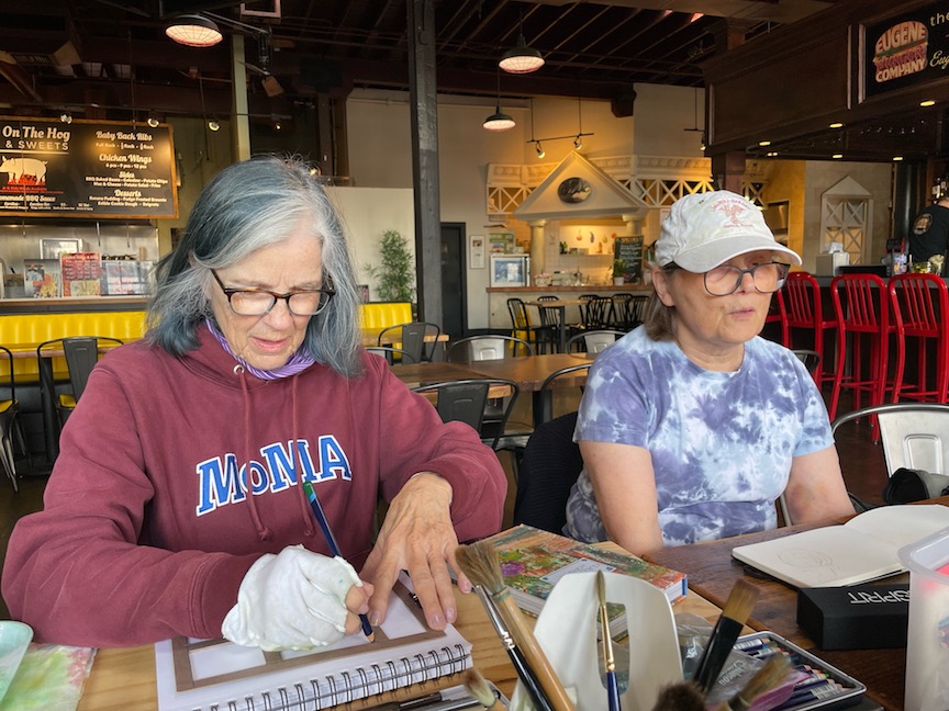 Peggy also worked on her sketch from Skinner’s Butte Park.