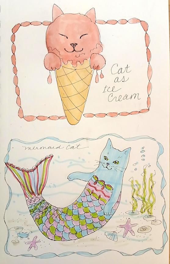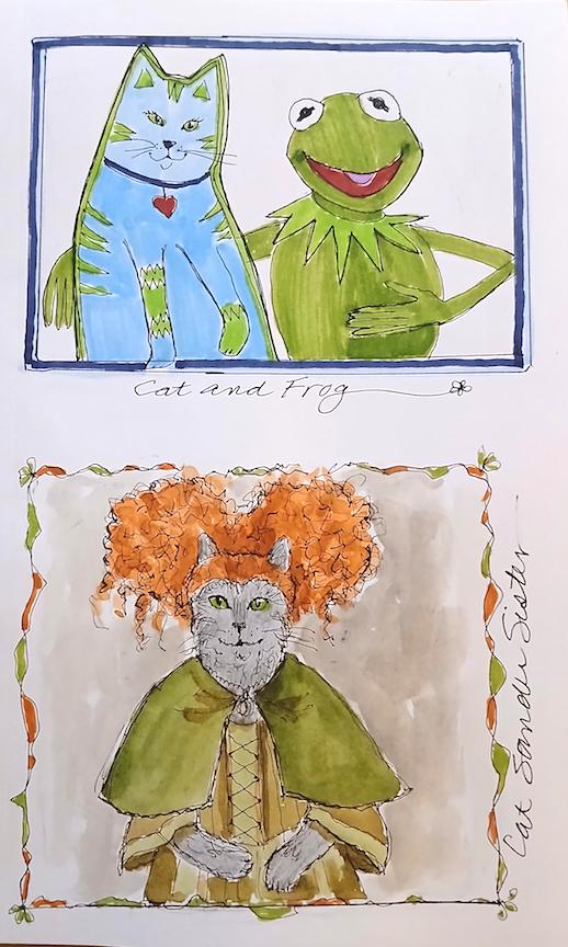 Bev is doing Catober. Like Inktober but with Cats! Also she loves doing collages with her art.