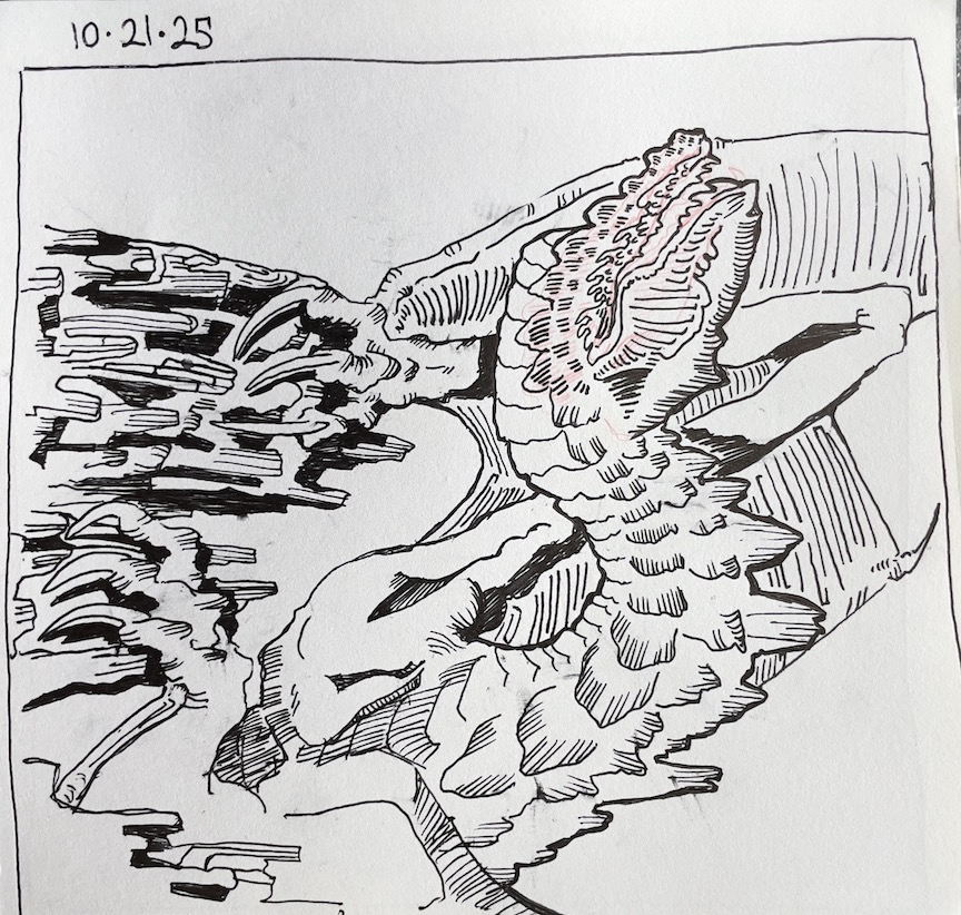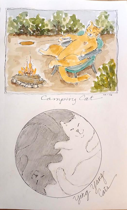 Some of us are doing a version of Inktober (sketching from word prompts). Daisy is doing Mushtober (sketching Mushrooms). Barbara So, Bitty, and Bev are doing Catober (sketching Cats).