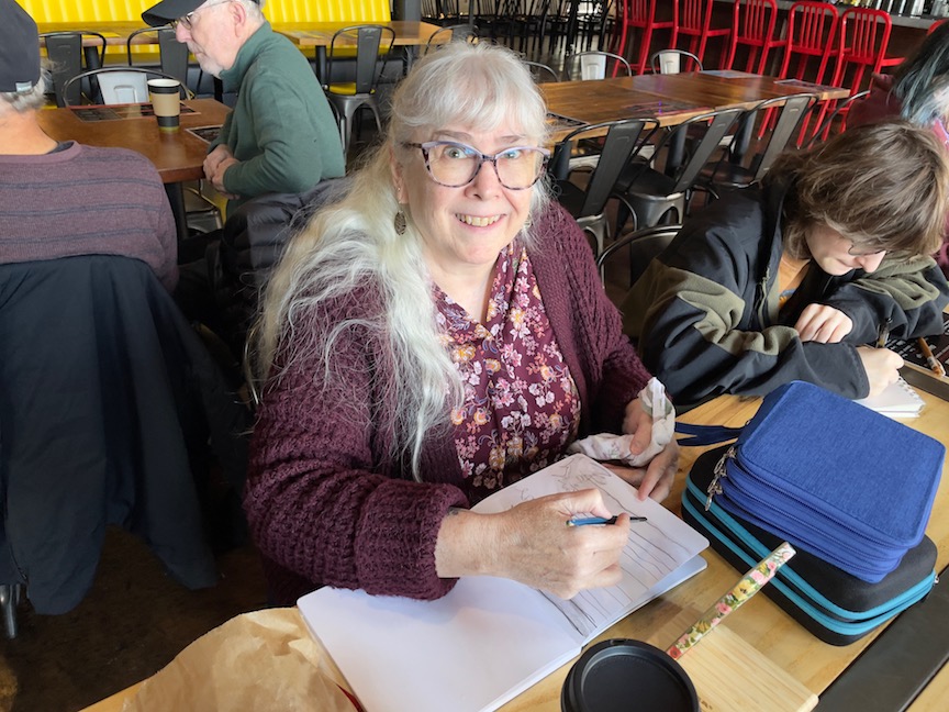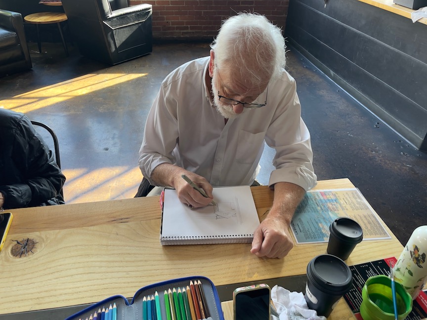 We hung out at Da Ra Cafe & Brew and had a wonderful time sketching and sharing. Below, Zoomers share too. Most sketches are WIPs. Click on an image to enlarge it.