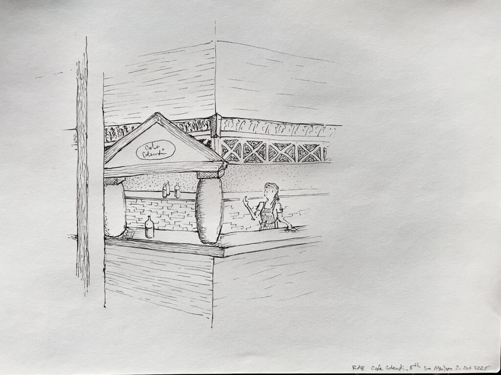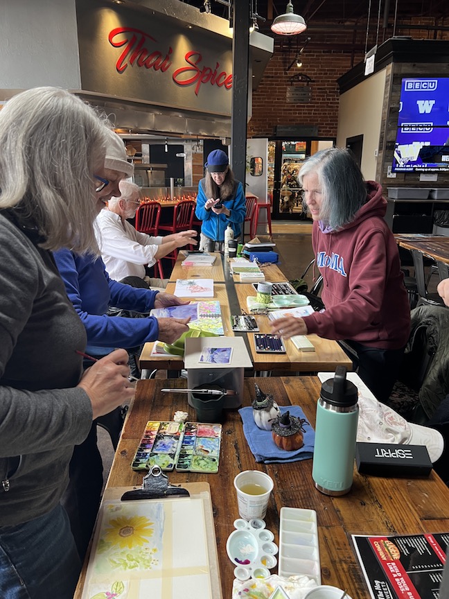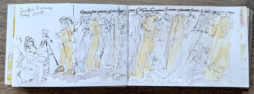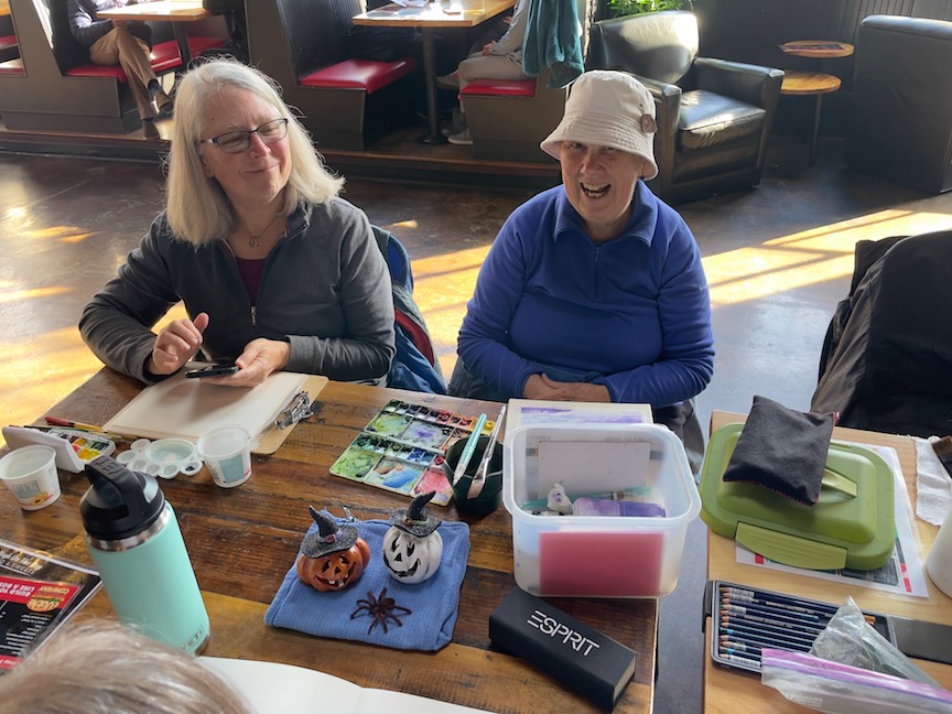 Some of us are doing a version of Inktober (sketching from word prompts). Daisy is doing Mushtober (sketching Mushrooms). Bev is doing Catober (sketching Cats). Laura and Rita are fresh back from Italy.