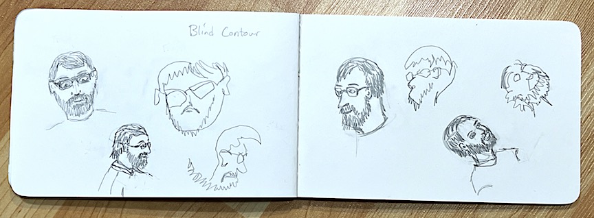 Why Zoom? Some of our members moved faraway and wanted to stay in touch so we zoom every Friday morning and share what we’ve sketched that week. Most sketches are WIPs. Click on an image to enlarge it.