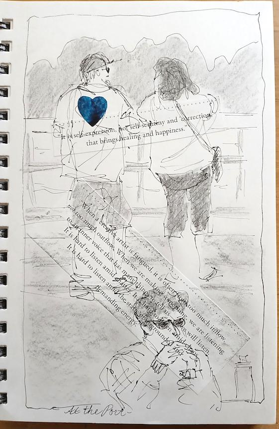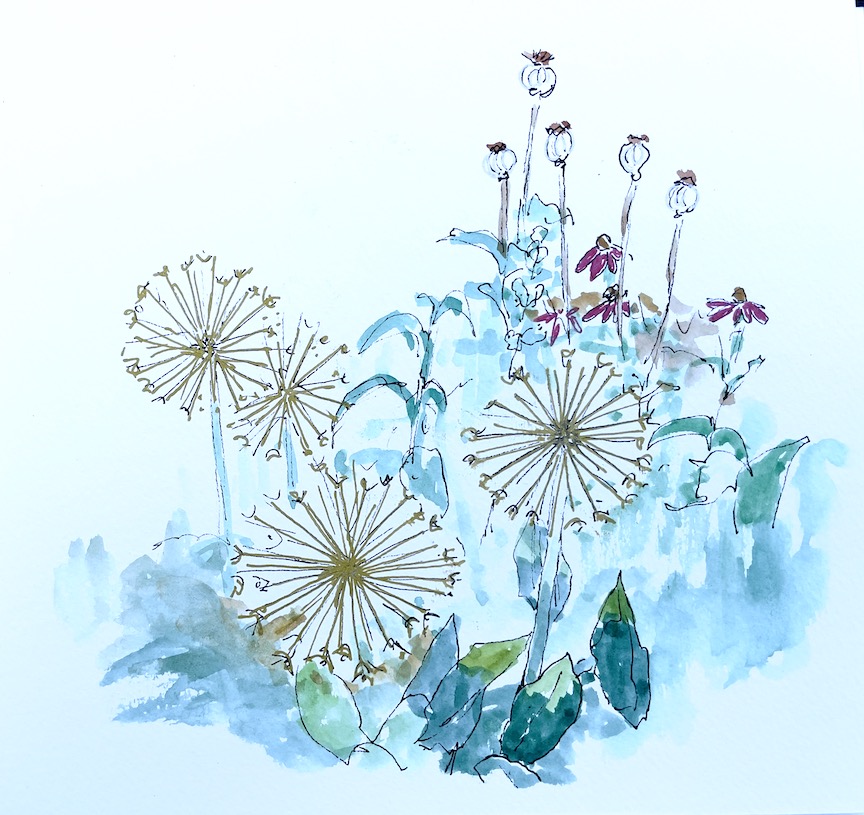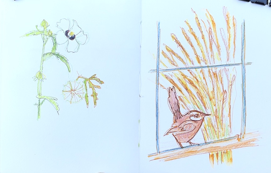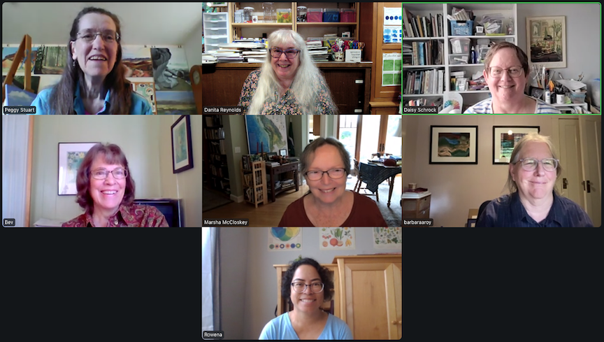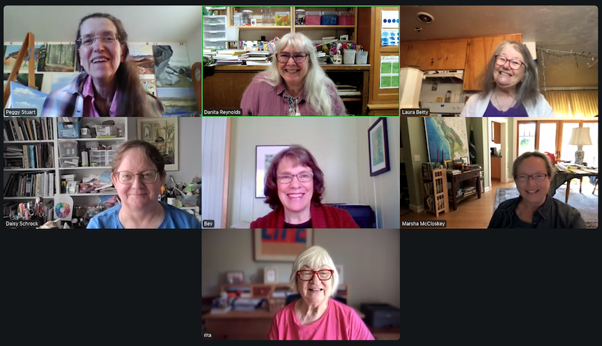 Left to right, Barbara So, Danita, Peggy, Bitty, Bev, and Rita. Laura missed the zooming but sent her sketches to share. Some sketches are WIP. Click an image to enlarge it.