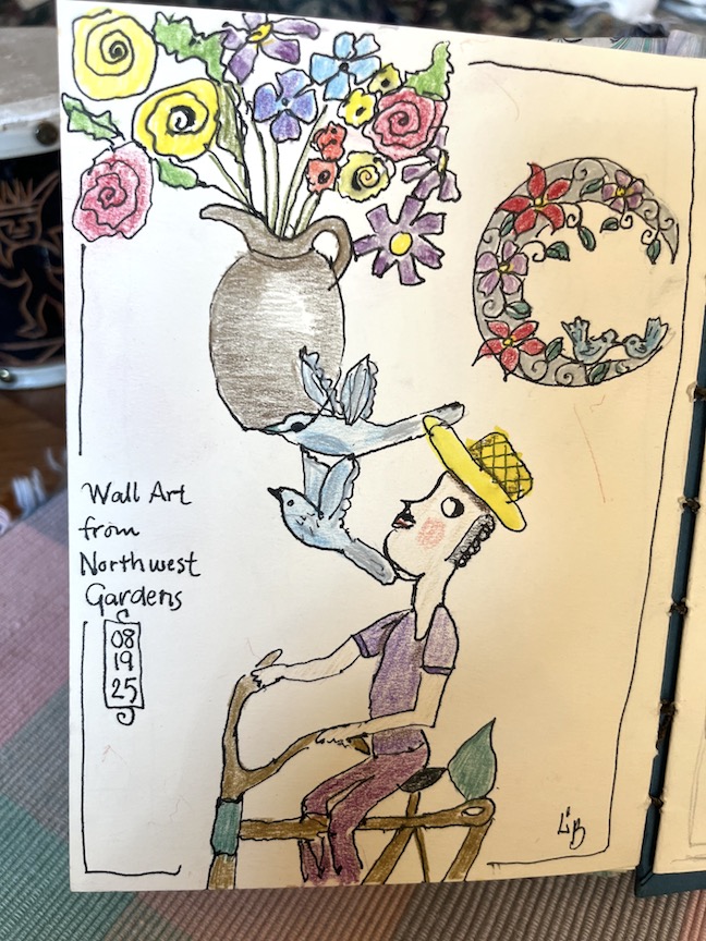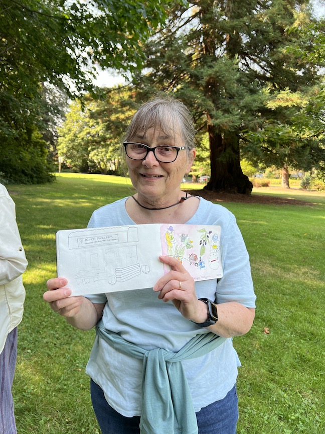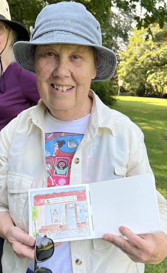 Peggy, Danita, Laura, Daisy, Bev, Marsha, and Rita. Rowena couldn’t make it but she sent her sketch to share below. Click image to enlarge.