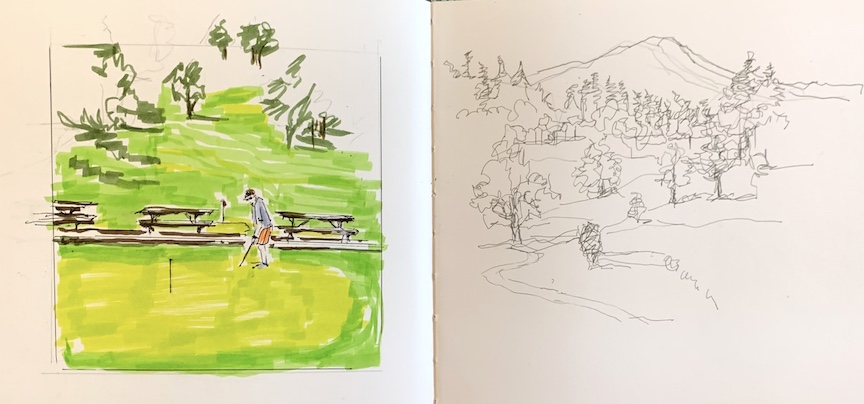 We sketched at Washburne Park in Eugene, Oregon. Also Zoomers share below too. Most sketches are WIPs. Click on an image to enlarge it.
