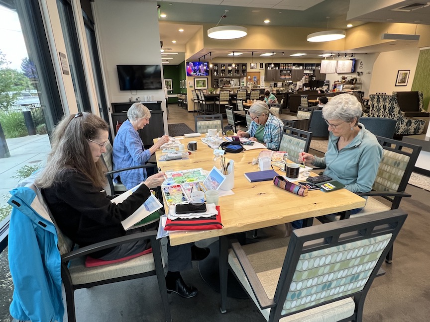 Barbara (WA), Danita, Peggy, Rowena (northern OR), Bev (coast OR), and Marsha. Some sketches may be WIPs. Click the image to enlarge.
