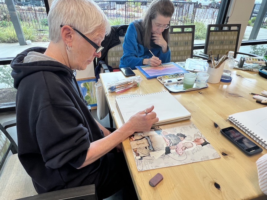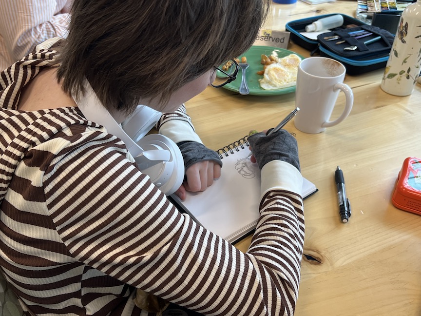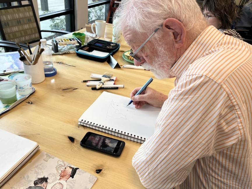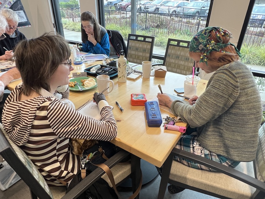 Why Zoom? Some of our members moved faraway and wanted to stay in touch so we zoom every Friday morning and share what we’ve sketched that week.