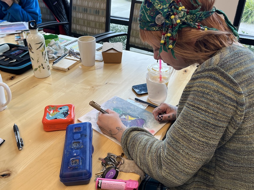 We share finished, unfinished (WIPs), and sometimes stages of a sketch. It’s what we’ve managed to get done within two hours together. Click on an image to enlarge it. Also don’t forget that Zoomers share below too.